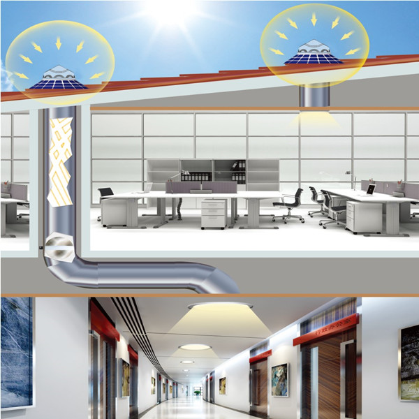 傳輸區:陽光通過高反射率的管道將光線傳輸到漫射器,以保證更長、更高效的傳輸距離。