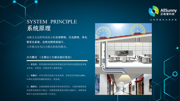 大家好!我們公司自2013年成立以來,始終致力于利用大自然的寶貴能源,通過先進(jìn)的科技手段,為各類建筑提供節(jié)能降耗的解決方案和實(shí)施措施。經(jīng)過多年的不懈努力和持續(xù)發(fā)展,我們的業(yè)務(wù)范圍已經(jīng)不再局限于室內(nèi)建筑的節(jié)能領(lǐng)域——雙模式無電照明系統(tǒng)。